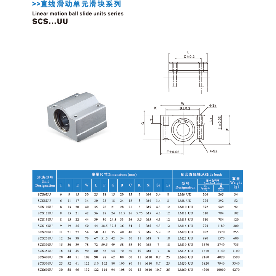 SCS6UU TO SCS60UU ( FOR MORE INFORMATION PLEASE CHECK MODEL LIST) |