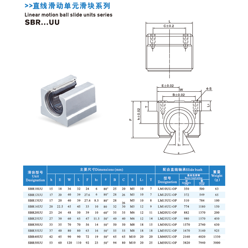 SBR10UU TO SBR50UU ( FOR MORE INFORMATION PLEASE CHECK MODEL LIST) |