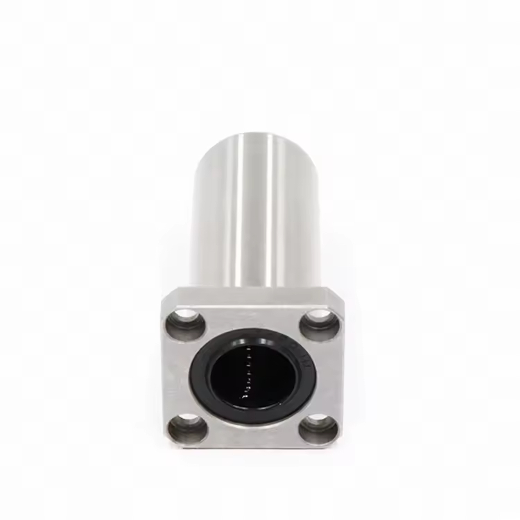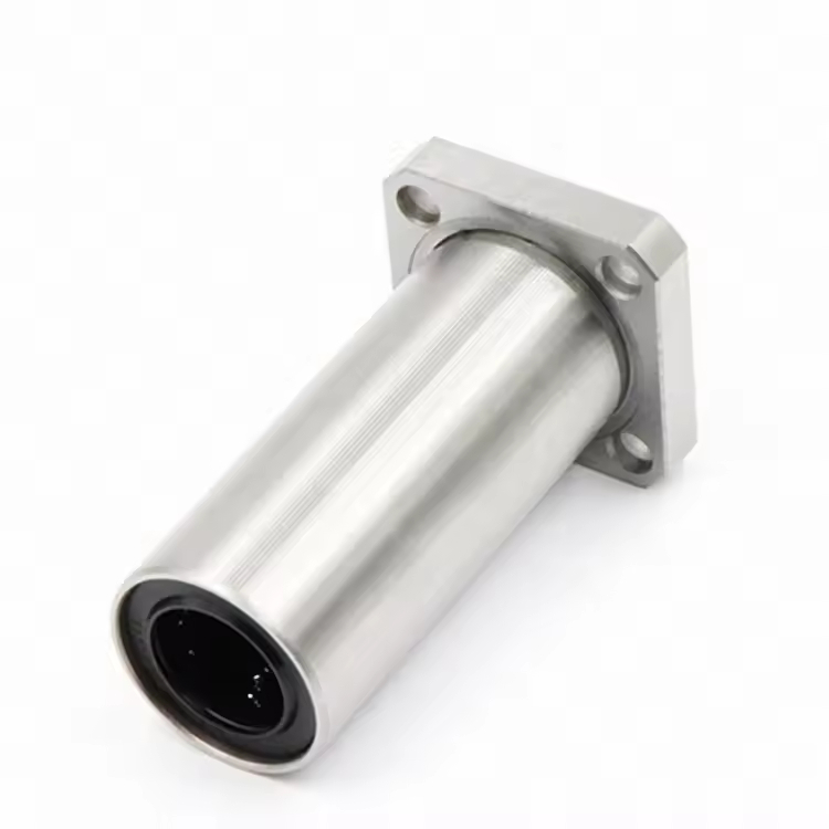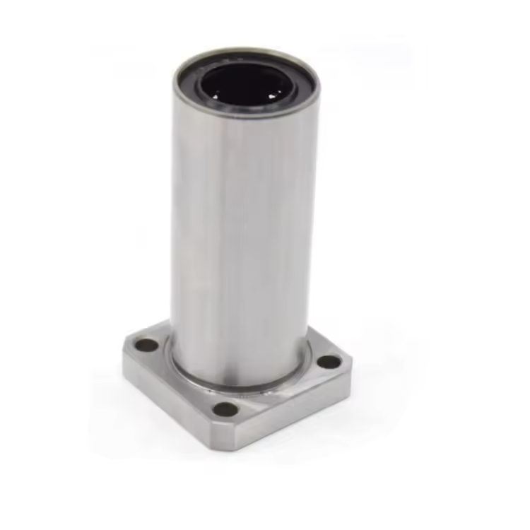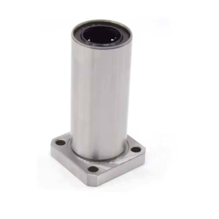 The LMK...LUU Series Flange Extended Linear Bearing is made of GCr15 (52100) bearing steel or 440C stainless steel outer sleeve, resin/steel/stainless steel retainer, double-sided NBR or fluororubber seals (LUU), with optional electroless nickel plating for rust prevention and pre-filled lubricant; it is mainly used in precision instruments, semiconductor equipment, medical devices, CNC machines, robots and automation production lines requiring compact installation, precise linear motion and stable load-bearing capacity; maintenance involves storing in dry, dust-free environments, cleaning with non-abrasive agents, regularly replenishing ISO G32-G68 lubricant, and inspecting for shaft wear and seal integrity within the operating temperature range of -20°C to 80°C.