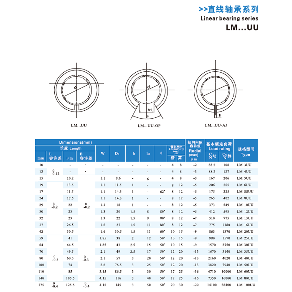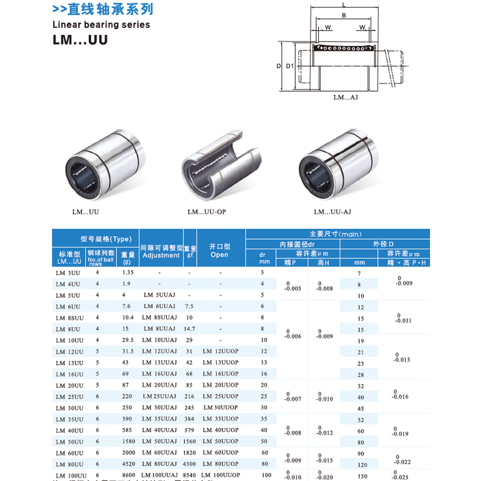| MODEL NUMBER | LM3UU TO LM100UU ( FOR MORE INFORMATION PLEASE CHECK MODEL LIST) |