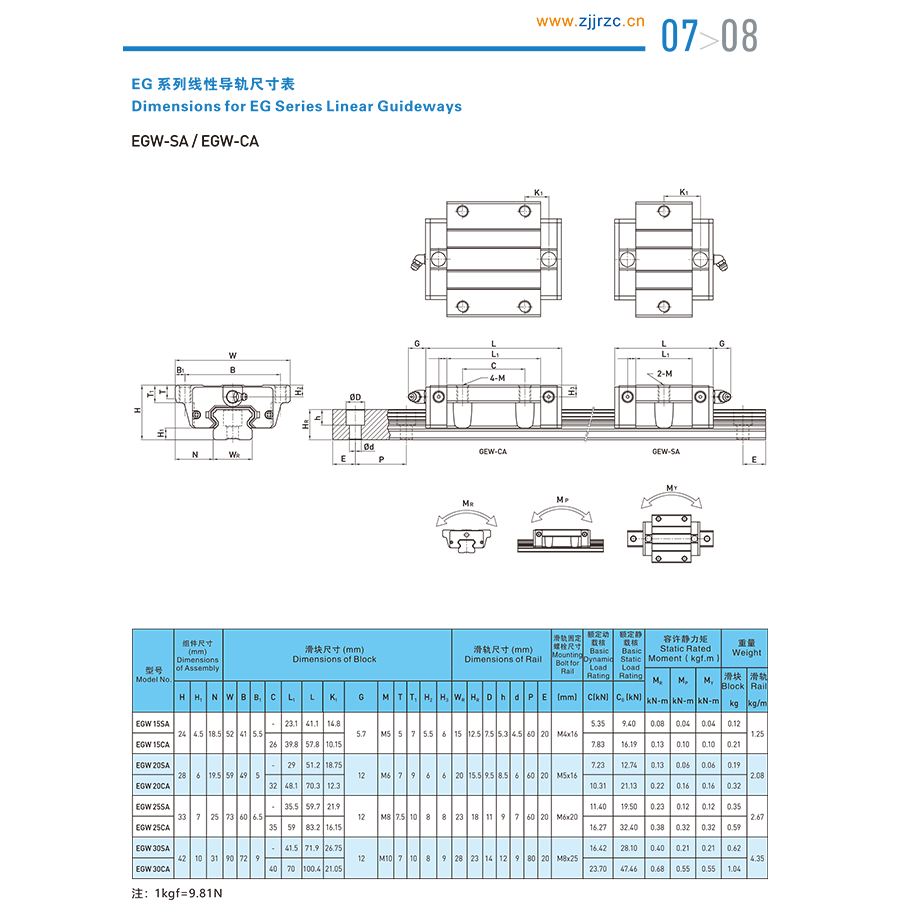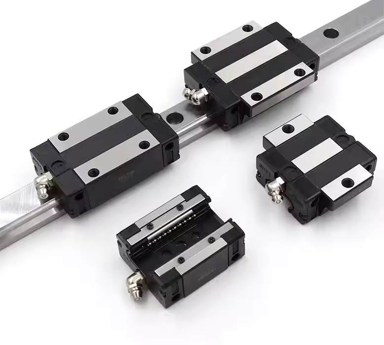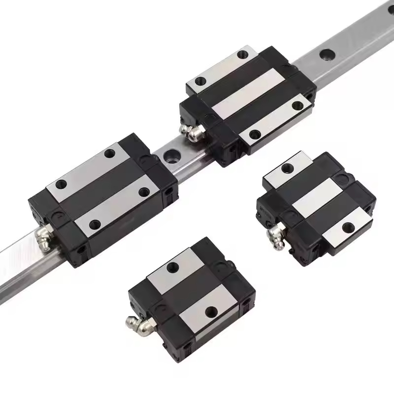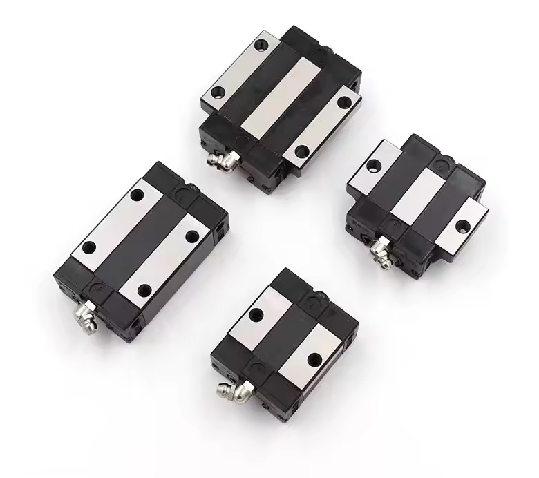 EGW linear slide blocks are made of materials such as carbon steel, stainless steel, alloy steel, chrome steel (GCr15), aluminum, and high-performance polymers (iglidur® RN202); they are used in CNC machine tools, industrial automation equipment, robots, medical equipment, electronic equipment manufacturing, packaging machinery, semiconductor equipment, precision measuring instruments, high-speed transportation equipment, woodworking machinery, biotechnology equipment, and PCB manufacturing equipment. For maintenance, clean surface dust and impurities with a clean cotton cloth and avoid corrosive cleaners; apply appropriate lubricating oil (0.3~0.5cc) or grease (3~4cc) regularly and avoid mixing different lubricants; move the slider back and forth 2-3 times after initial lubrication for uniform distribution; check the lubricant condition and replace if thickened or contaminated; tighten loose fasteners periodically; store on a flat surface, avoid high temperature (>80℃) and humidity, and apply anti-rust oil for long-term storage; replace worn parts (e.g., liners) when reaching the wear limit; avoid overload, impact, and scratches on the guide rail surface.