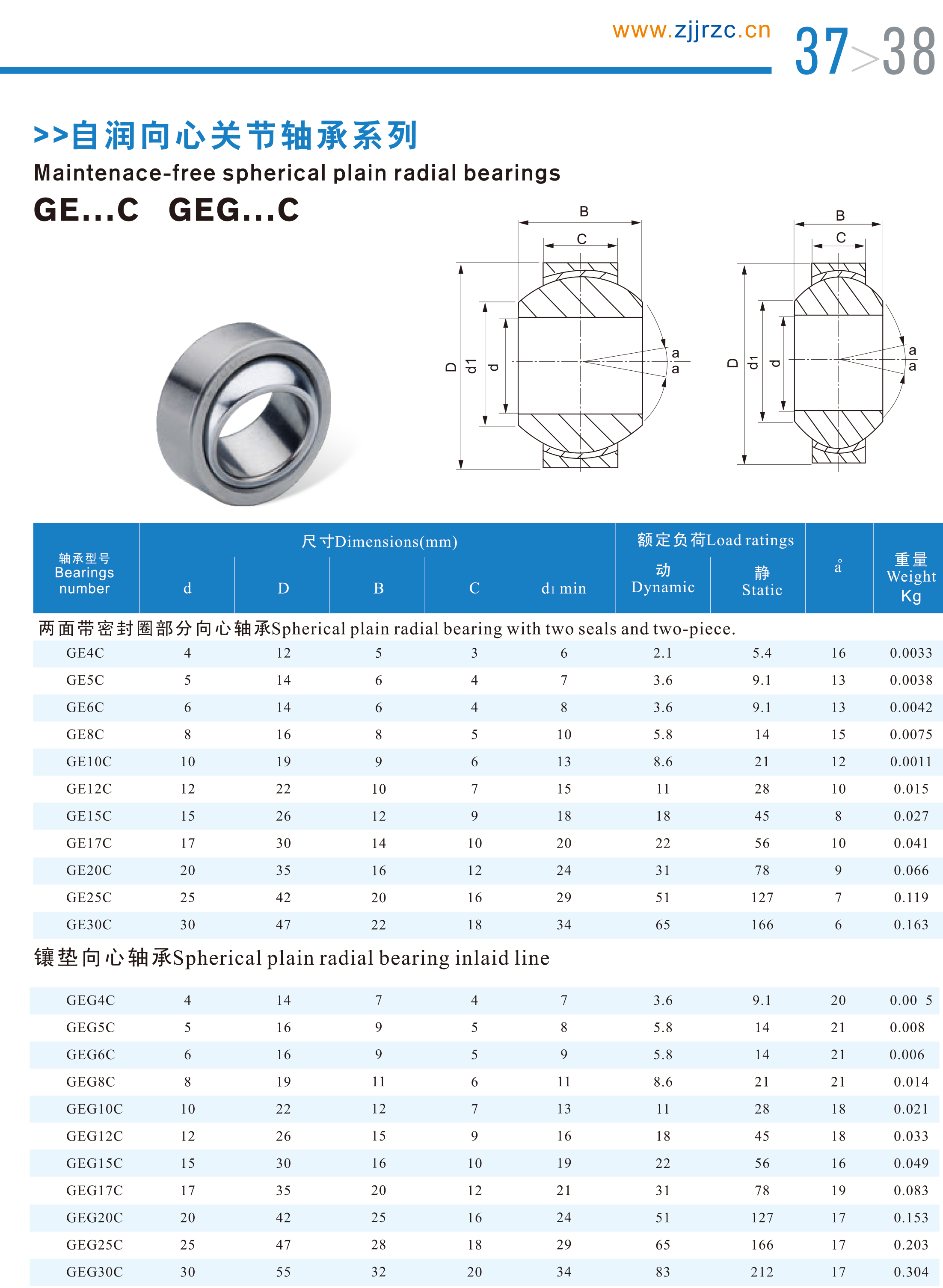 GE C Series Spherical Plain Bearings GE10C Radial Spherical Plain Bearings GE10C